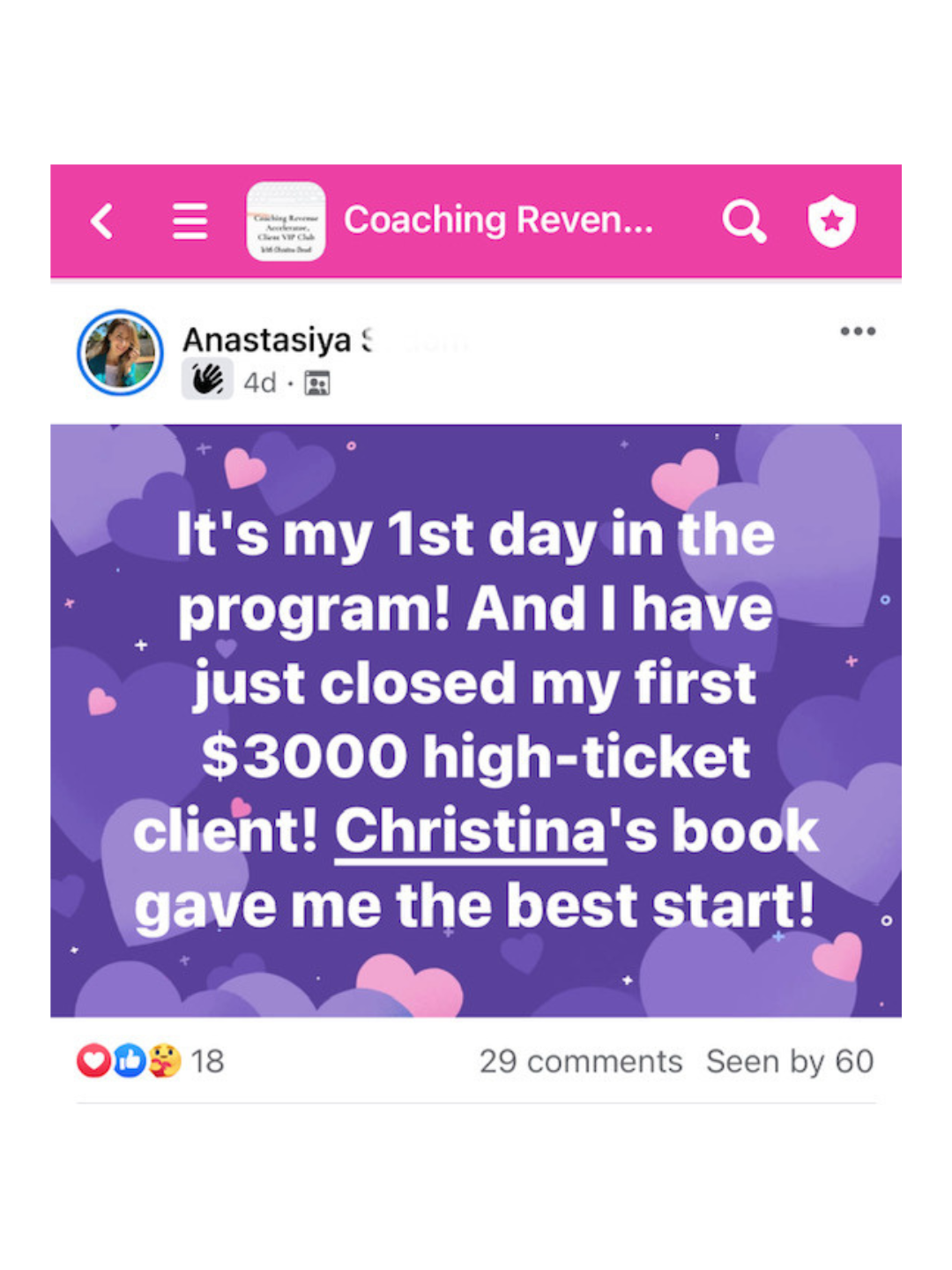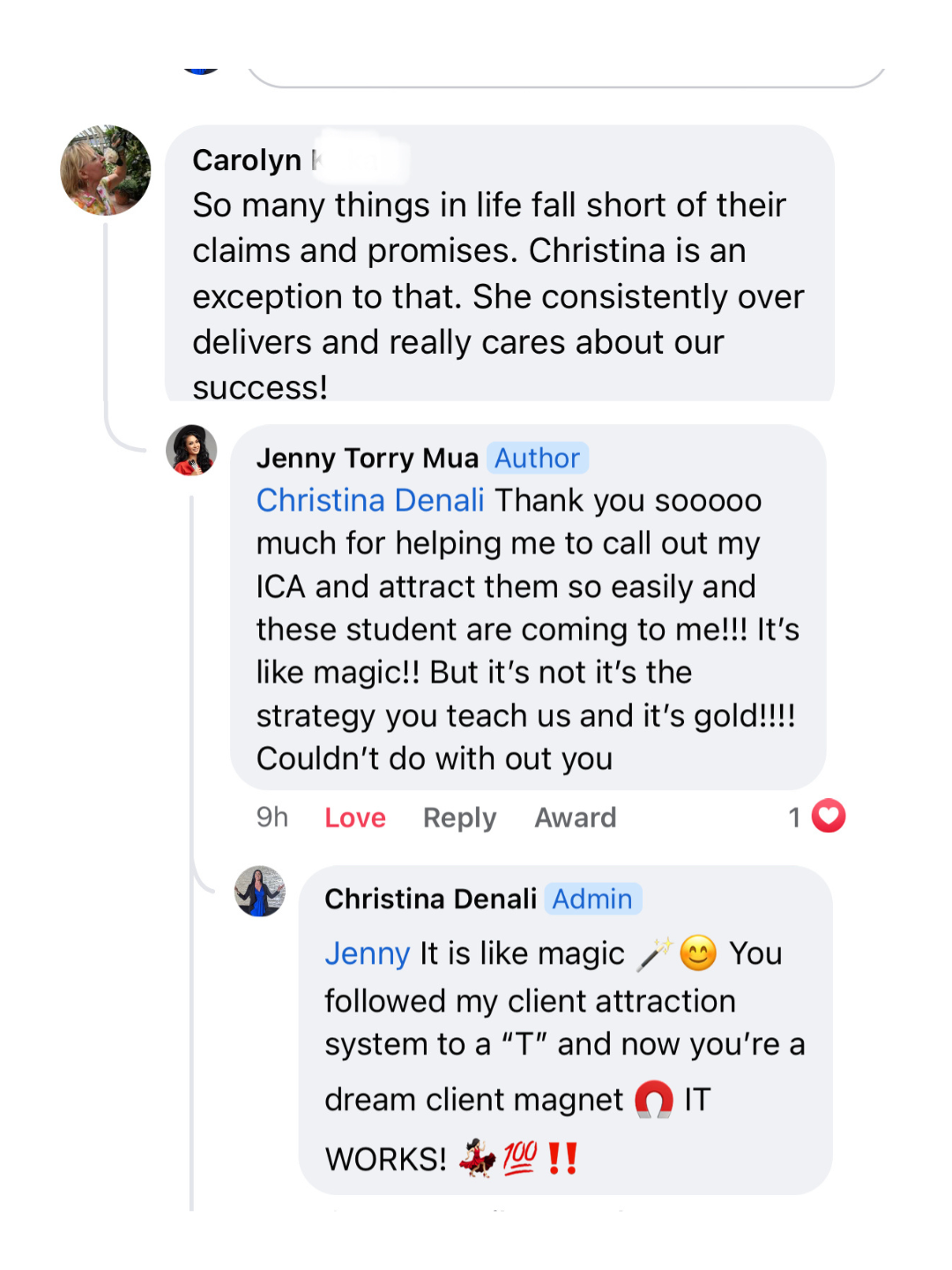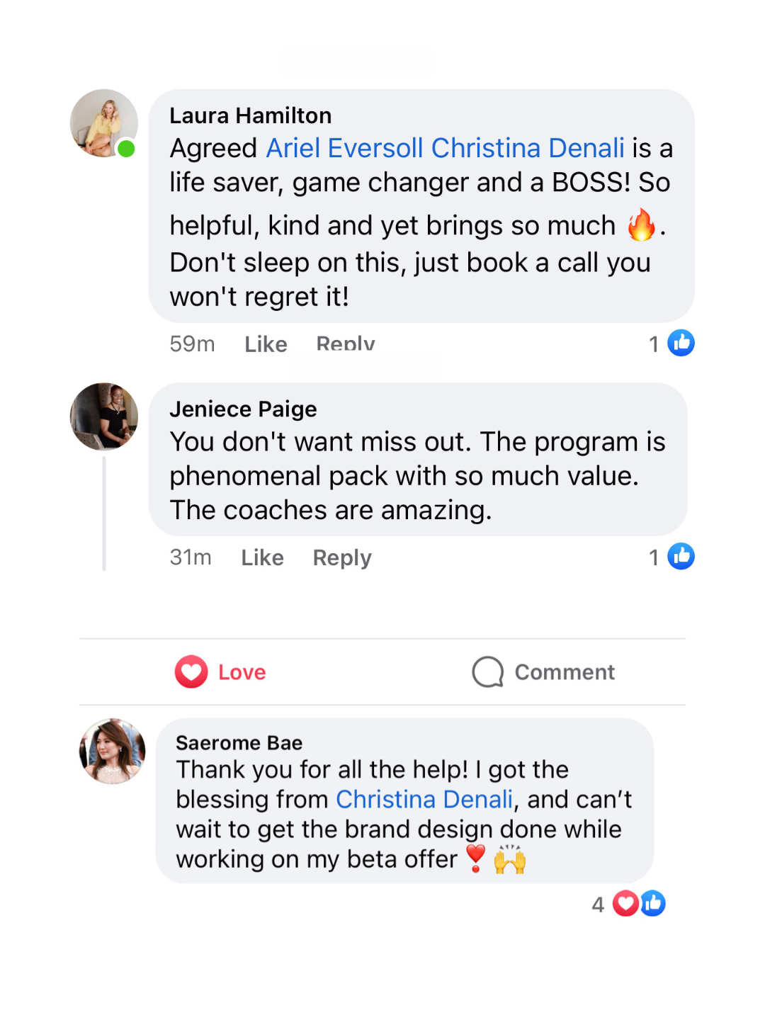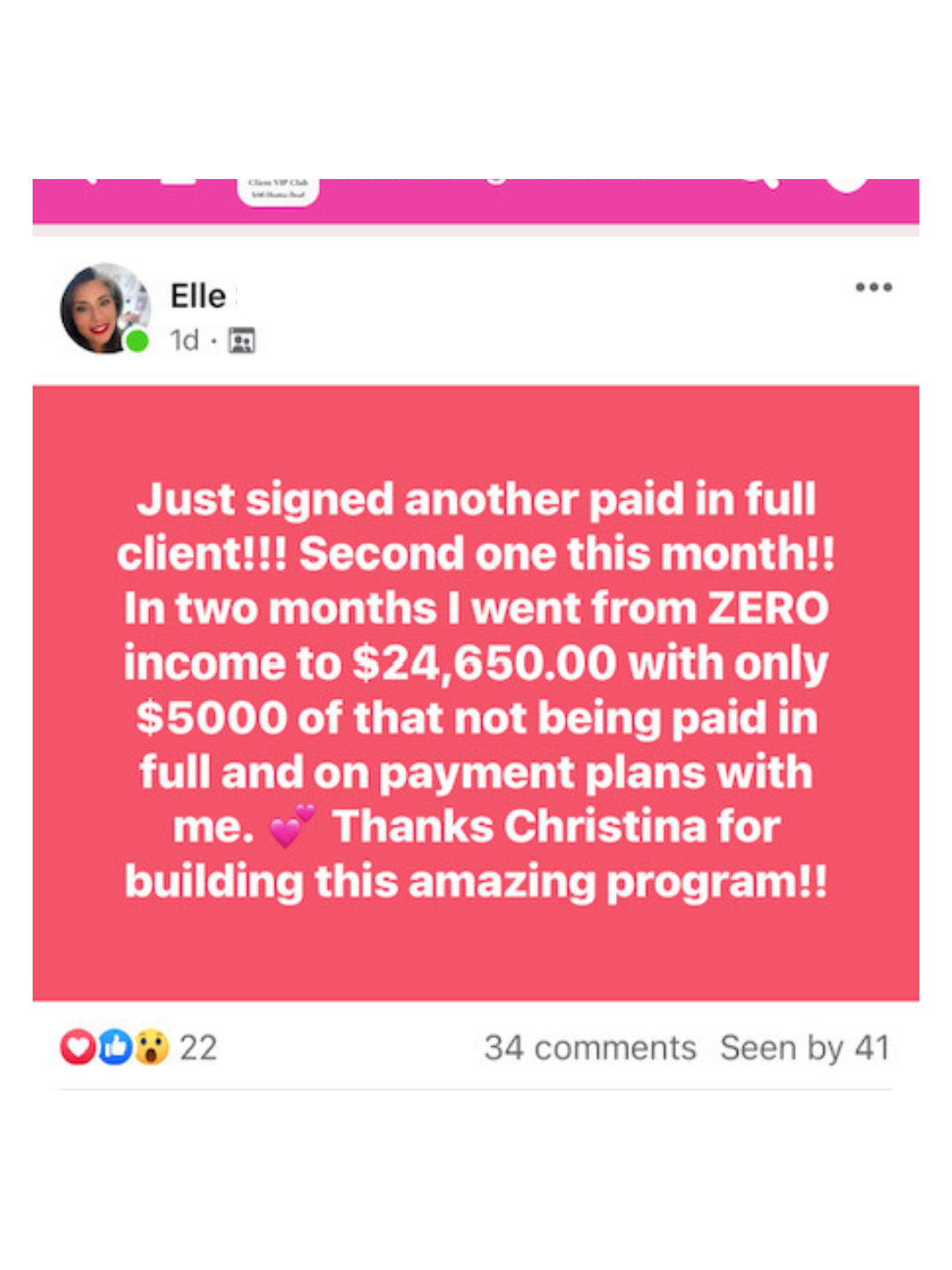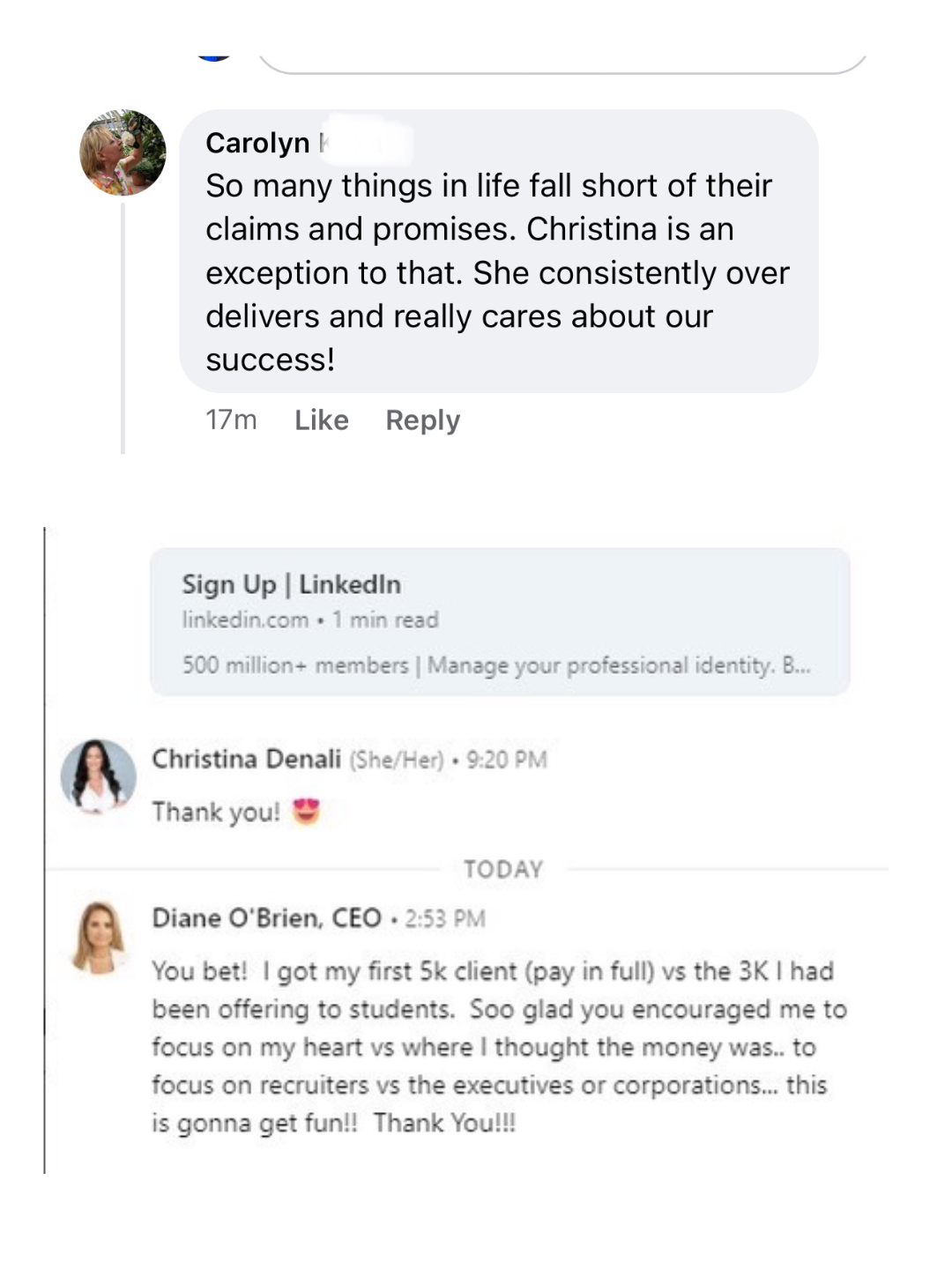 “Christina is a talented business consultant and an amazing human being! She truly cares about her clients’ growth and her genuine spirit truly makes everyone feel seen and heard.